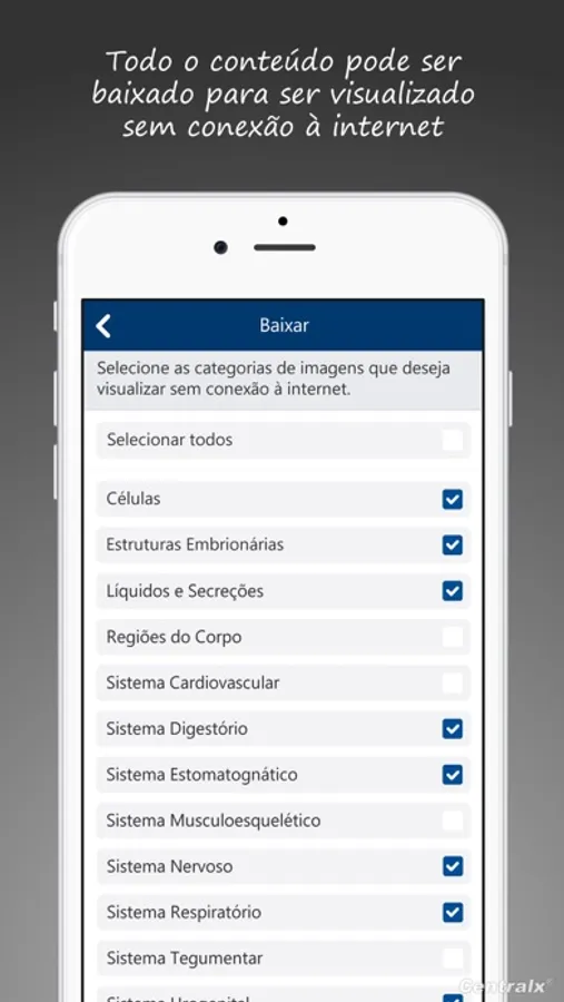 Saiba mais sobre cada sistema do corpo, realizando buscas, fazendo anotações e adicionando as imagens que desejar aos seus favoritos, podendo também enviar por e-mail ou salvar qualquer ilustração.
