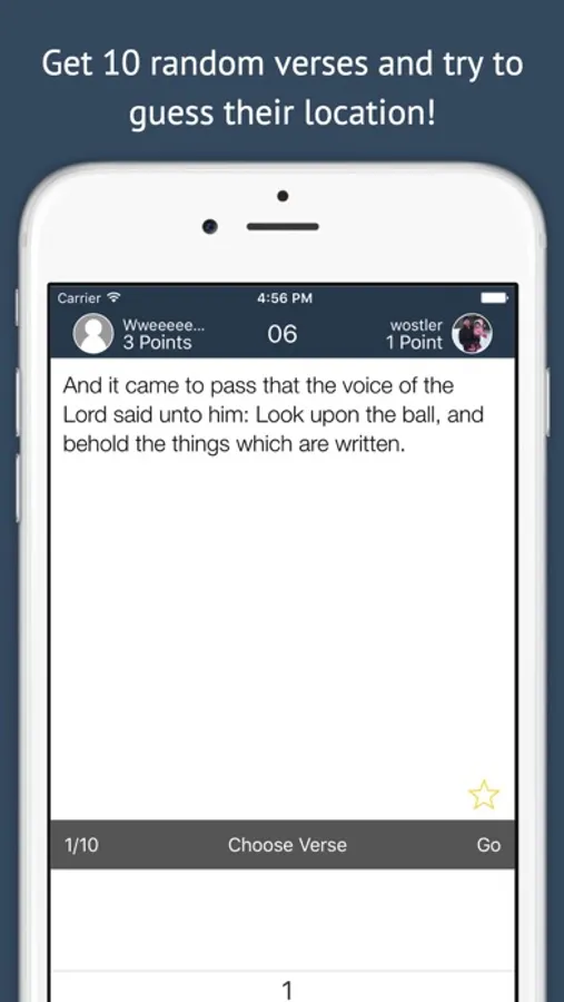 4. You get a point for getting the book right, two additional points for the correct chapter, and three additional points for the correct verse! There are six points possible per round.