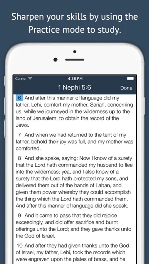There is also a Practice feature that allows you to practice on your own, and also read the verses in context for better understanding.