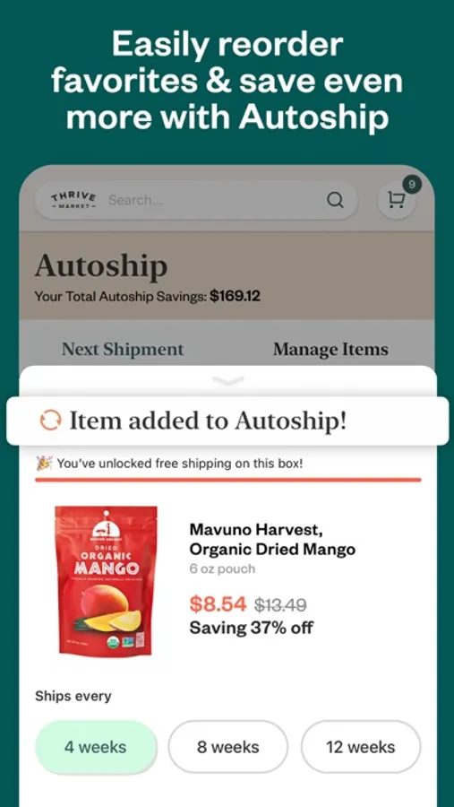 I love the Thrive market app. Instead of spending my Saturdays, driving from store to store looking for specialty items, Thrive makes it effortless. I now have all my favorites on auto-ship. If I need to adjust my list, it is very simple and quick. It is a money and time saver.