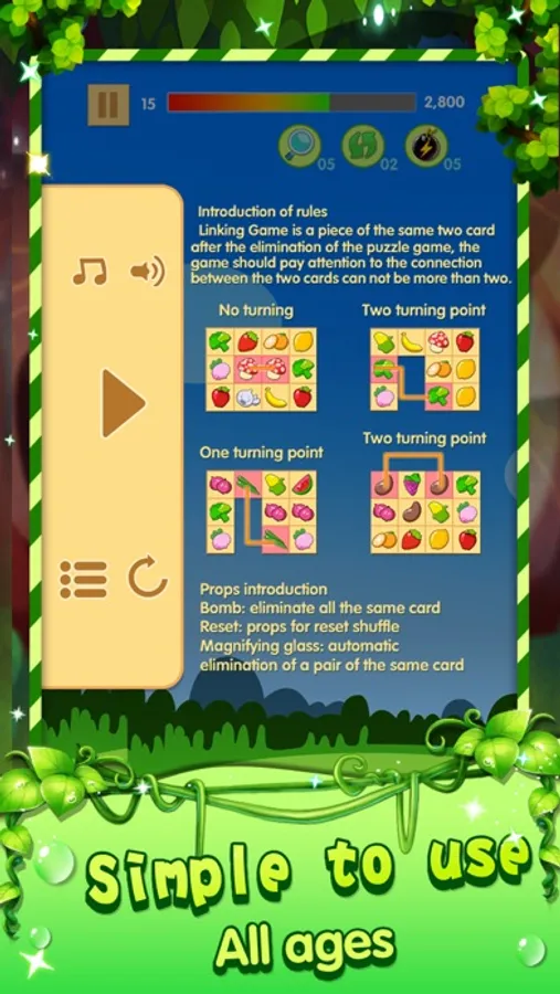 -Play super easy, simply connect 2 or more of the same color fruit can be eliminated.
