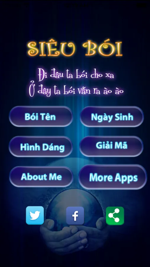 Siêu Bói là ứng dụng bao gồm rất nhiều loại bói khác nhau. Cùng một lúc, bạn có thể thoả thích xem bói Tên của mình, của người ấy nói lên điều gì?