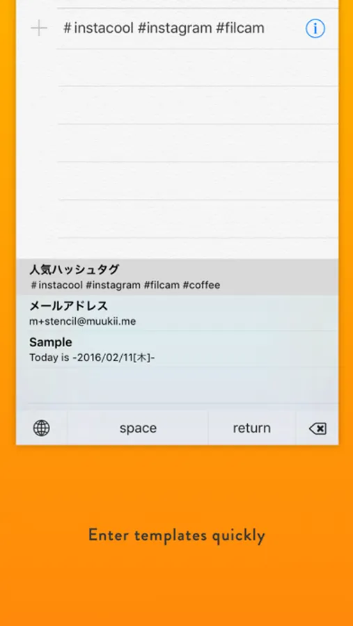 Stencil is an app that can be entered quickly fixed phrase that was registered in the app from the keyboard.