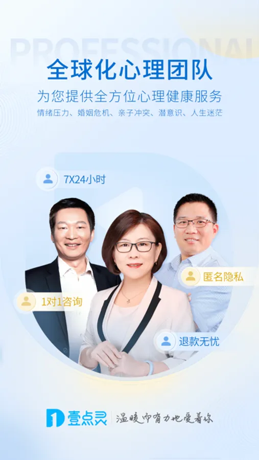 壹点灵是一款综合数字心理健康服务平台,致力于让每个无论身处何地的人都能获得负担得起的高质量心理咨询服务。 我们提供一个安心、放心、舒心的空间,让您可以7X24小时随时随地倾诉,并获得个性化定制的专业帮助。