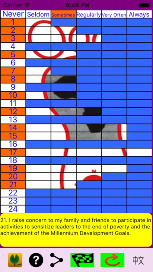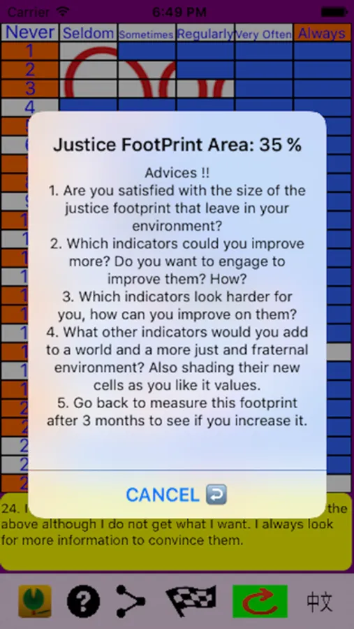 It is a very simple App, which aims to discover how is your justice footprint inspired by the "LOVE and LIVE JUSTICE" of Spanish Caritas campaign.