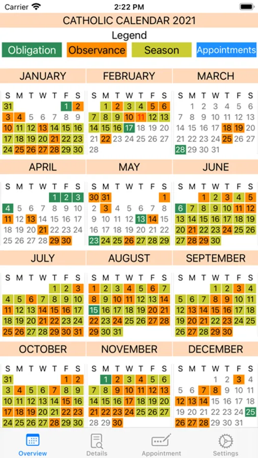 A comprehensive calendar app to view dates of significance in the Catholic Christian community such as Holy Days of Obligation, Feast Days, Days of Observance and Seasons in the Liturgical year.