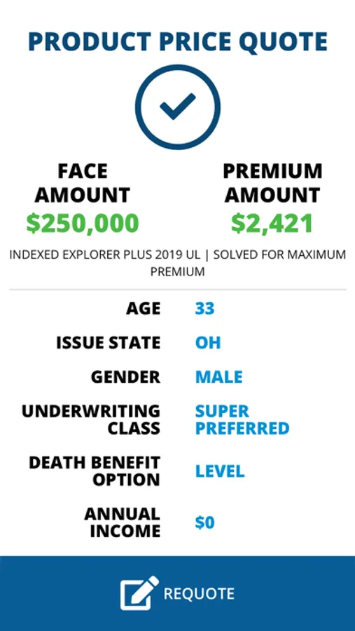 • Indexed Explorer Plus and Indexed Explorer Now IUL price quote functionality