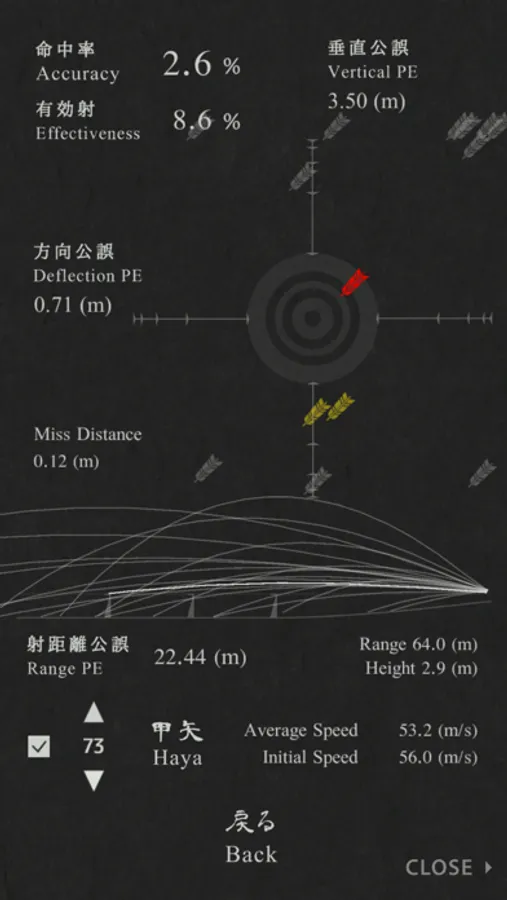 This game has functions to analyse your result every time you shot arrows. Some functions take statictics throughout your play, some are to be reset when you change target. Otherwise, you can also challenge achievements including a little unique requirements.