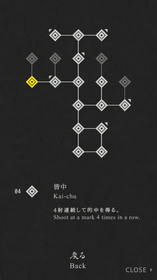 弓稽古にはあなたが矢を射る度、その情報を分析する機能が備わっています。 全てのプレイを通じた統計機能もあれば、狙う的を変えるごとにリセットされるものもあります。 また少しユニークな内容の含まれる実績に挑戦することも可能です。