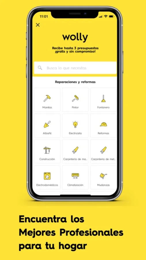 ¿A quién no se le han roto las persianas de su habitación o la lavadora y no ha sabido a quién acudir? ¿Quién no ha intentado pintar su habitación o reformar la cocina y ha tenido que perder tiempo buscando a un pintor o a un manitas con precios totalmente desorbitados? Wolly pone solución a todo esto. Rápido, sencillo y comparando entre varios presupuestos para que tu obra o reparación salga como esperabas.