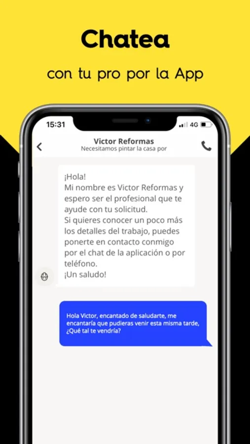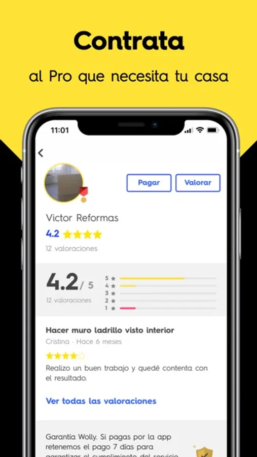 Podrás consultar las valoraciones y la experiencia de cada uno de ellos y contactar a través del teléfono o del chat de la aplicación. Una vez realizado el trabajo podrás valorar el servicio que te ha ofrecido y realizar el pago, de forma cómoda y segura, a través de la aplicación.
