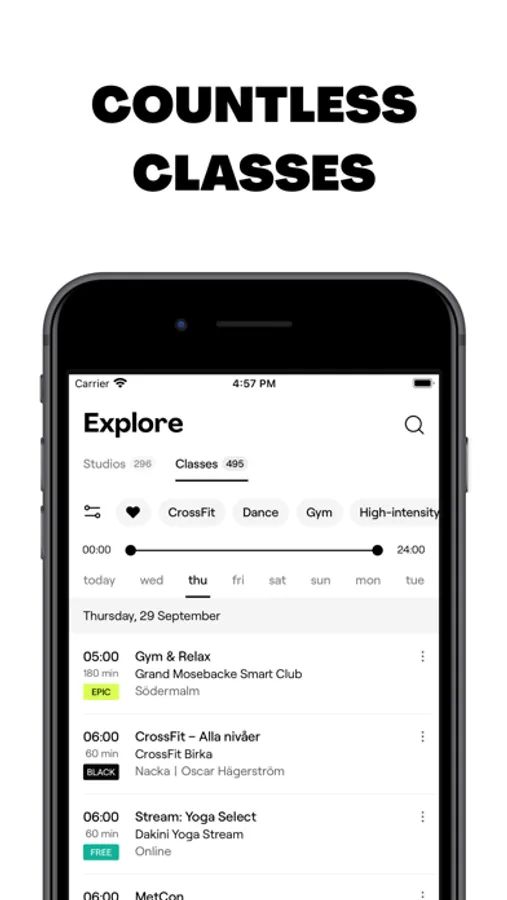 With Bruce you have unlimited workouts at our 550+ studios and gyms in Stockholm, Gothenburg, Malmö, Copenhagen, Oslo and Bergen. Choose anything from CrossFit and yoga to gyms and climbing.