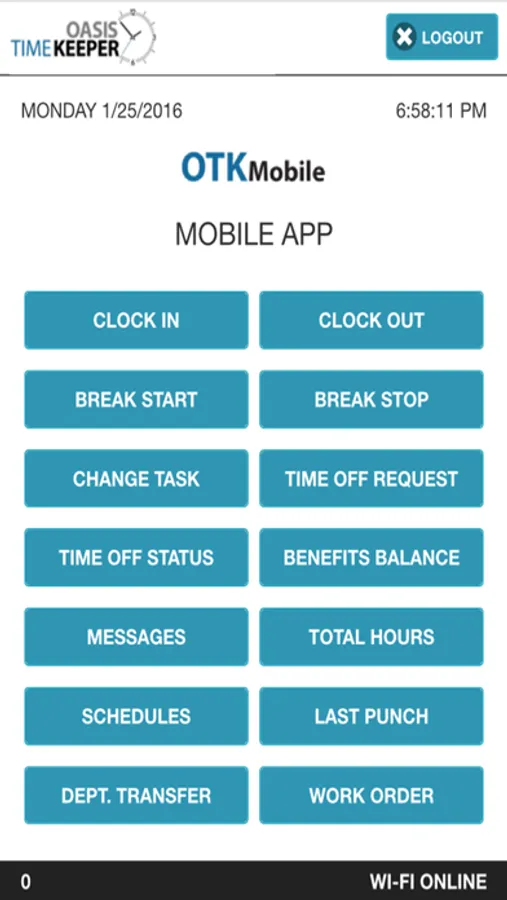 OTK Mobile can be deployed along with traditional time clocks or used as the exclusive clocking method for your time and attendance system.