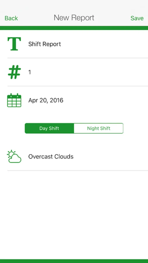Shift Report was designed for use on site so you can create a new report with the least amount of taps possible. It does this by: