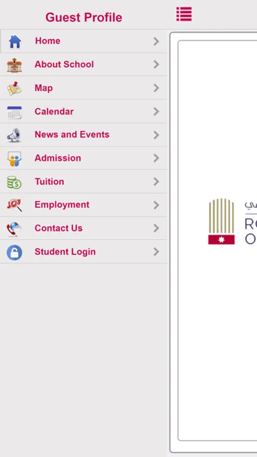 You can access the RACA app as a visitor and as a private user (Student with login).