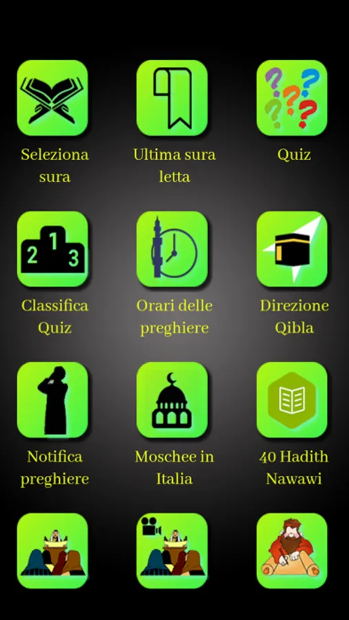 Oltre al Corano, nell'applicazione ci sono tante altre funzionalità utili ai musulmani: l'orario delle preghiere nelle principali 20 città italiane(almeno una per regione, la notifica delle preghiere per queste 20 città(con e senza Adhan), la mappa con tutte le moschee in Italia, la direzione della Qibla, i sermoni, gli hadith Nawawi e le storie dei profeti.