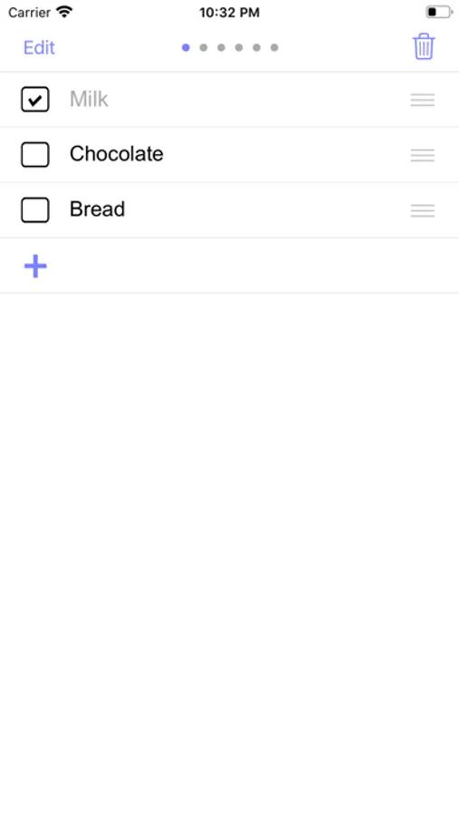 This app contains 6 pages. User and swipe left/right (outside the list items) to move next/previous pages.