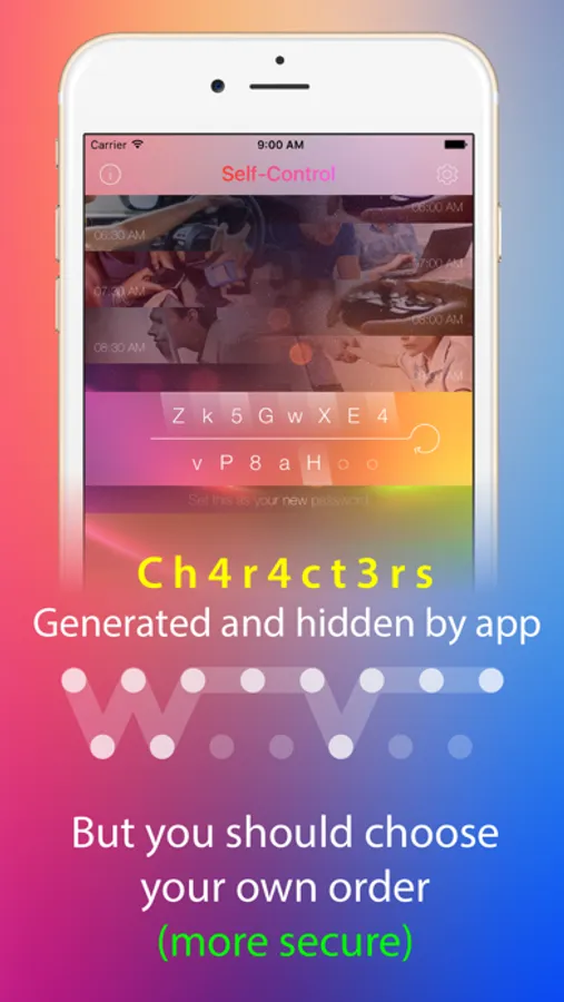 • The password is presented on two lines, so you can choose your own geometric pattern to re-order the characters to create a DIFFERENT password