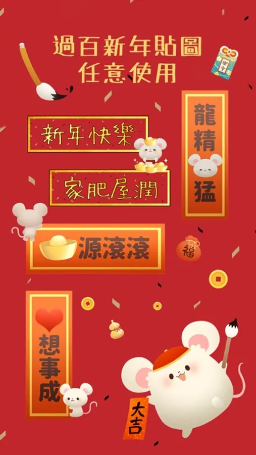 用新年相機裝飾你的照片,讓每個親戚及朋友都露出羨慕的眼神!
