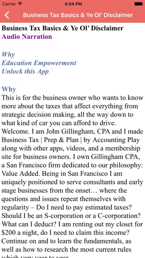 Learn taxes with audio, video, books, and more inside. Focusing on the contractor, freelancer, and sole proprietors - learn the language of tax. Take a dive into the basics, business planning, and specialized chapters for different business types. Look for the crowd funding and paid drivers section for everyone participating in the new, new economy. More strategy, more deductions, and more entrepreneurship empowerment. Brought to you by Accounting Play.