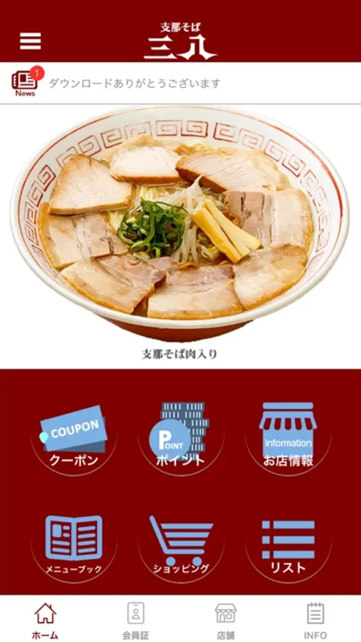 徳島県鳴門市のソウルフードとして愛され続け現在は徳島市内にも店舗をかまえる【三八】の公式アプリです。