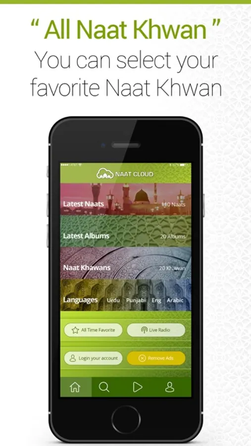 Listen to Jumbo Naat Collection. The Naat Cloud app contains a collection of popular Naats of a number of internationally famous reciters. You can listen to Naats in many languages including Urdu Naats, English Naats, and Arabic Naats and in various other languages. You can find new and latest Naats everyday for your Muslim spirit satisfaction. Some of the famous Naat reciters are: