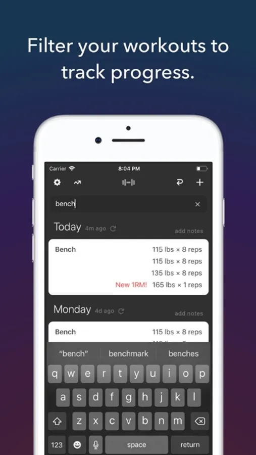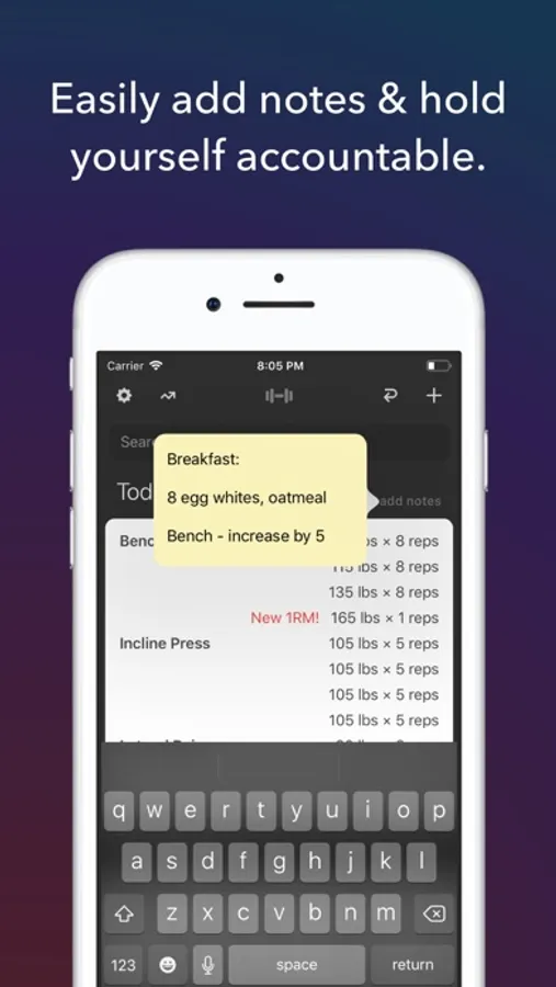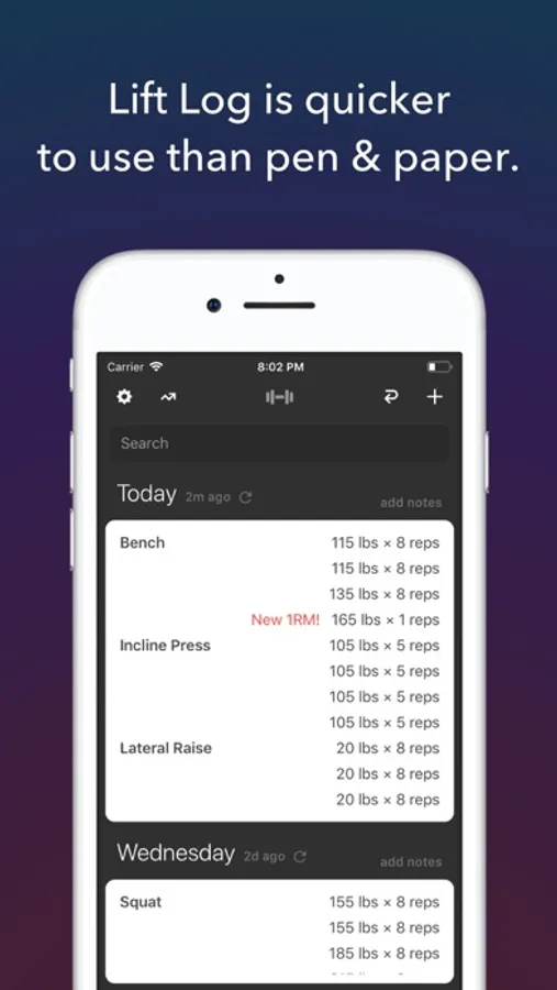- Type in any routine and Lift Log remembers it and starts tracking it forever