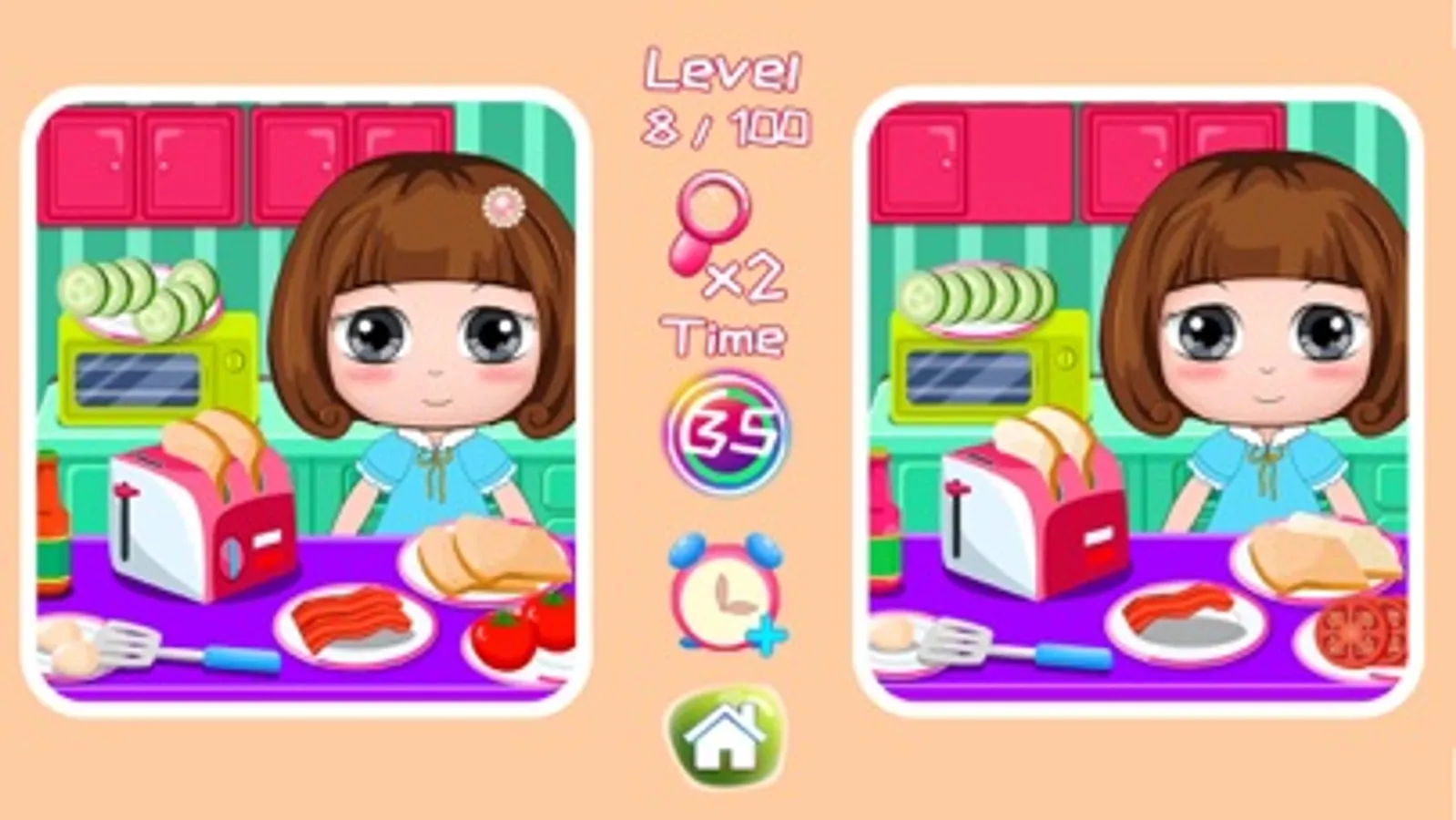 Playing this game, children can quickly and accurately find the differences, and they can effectively enhance the powers of observation and attention. With better learning ability and observation skills, children can be easier to access to the learning state in schools and easier to learn form the teachers.