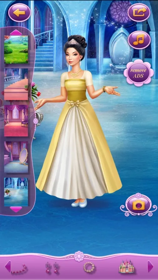 - backgrounds - visit different places with your princess - castles, ballrooms and gardens