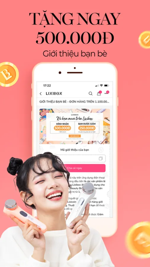 - Giới thiệu bạn bè nhận thưởng lên đến 500K: khi tham gia giới thiệu bạn bè sử dụng và mua hàng tại Lixibox.