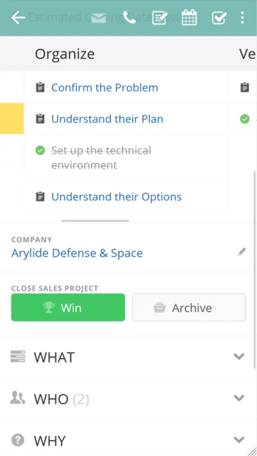 Quickly and easily access your prospect list, pipeline, playbooks, scorecards and sales enablement content. Always know what the next step to take is and collaborate with your buyer to help them move forward in their decision process. Disqualify prospects that don’t meet your ideal customer profile and create sales projects for qualified opportunities to build your pipeline.