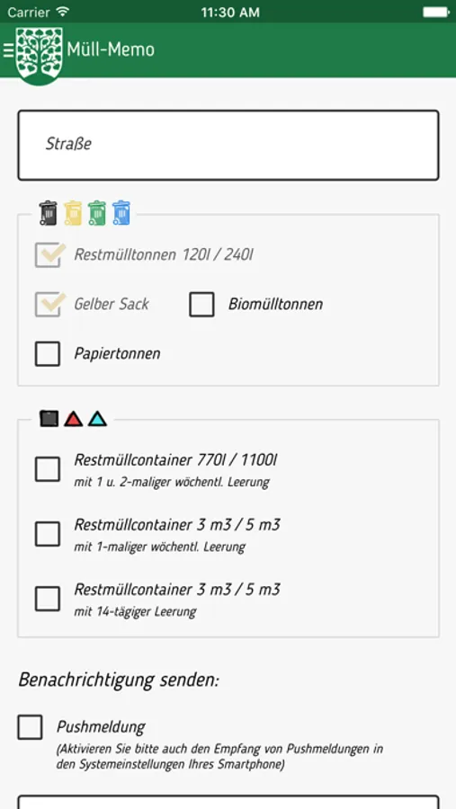 Schluss mit der ständigen Suche nach dem Abfallkalender: Dank der einfachen und übersichtlichen „Müll-Memo“-Funktion erhalten Sie alle aktuellen Termine zur Abholung Ihres Mülls ganz bequem im Überblick - und nach Wunsch sogar als Push-Meldung auf dem Startbildschirm Ihres Smartphones oder Tablets oder als E-Mail.