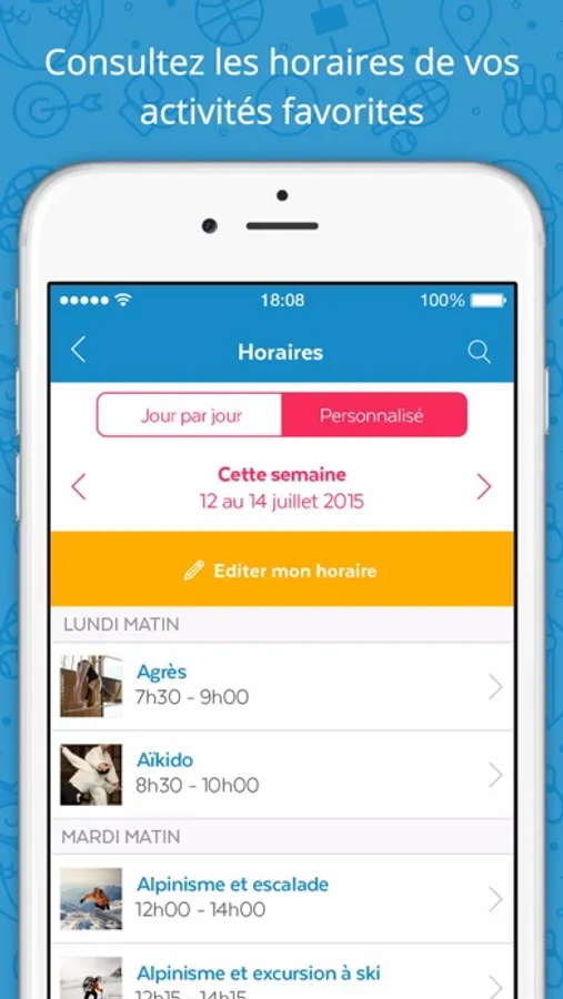 - Horaires, descriptions, conditions et tarifs des activités de A à Z, jour par jour et par catégories.