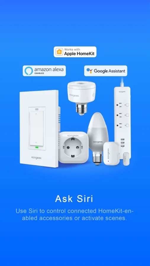 Control your HomeKit-enabled accessories with your voice using Siri directly from your iPhone, iPad, or iPod touch. (e.g. After a Room being named Kitchen, you can simply tell Siri to “Turn my Kitchen off” to turn off your kitchen’s Koogeek SmartPlugs)**