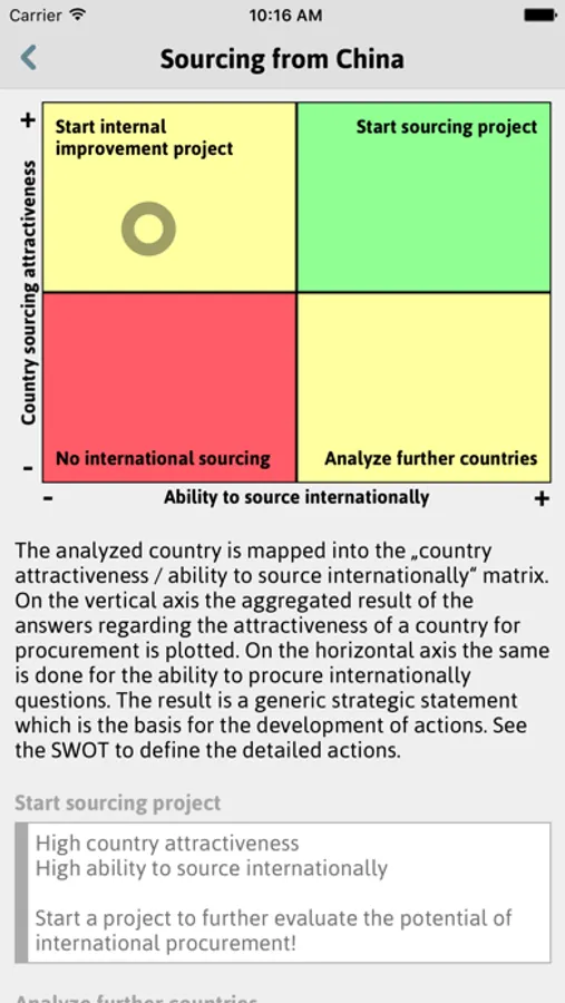 Fit2Procure™ supports companies to assess the attractiveness of a country with respect to sourcing and the companies’ capabilities with regards to international sourcing. It further supports to make an initial high-level supplier evaluation.