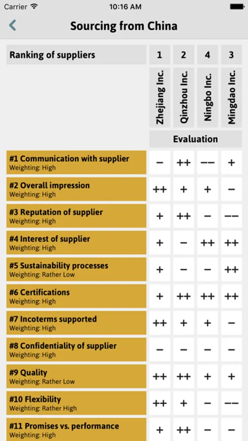 4. High-level evaluation of potential suppliers: ranking of suppliers analyzed