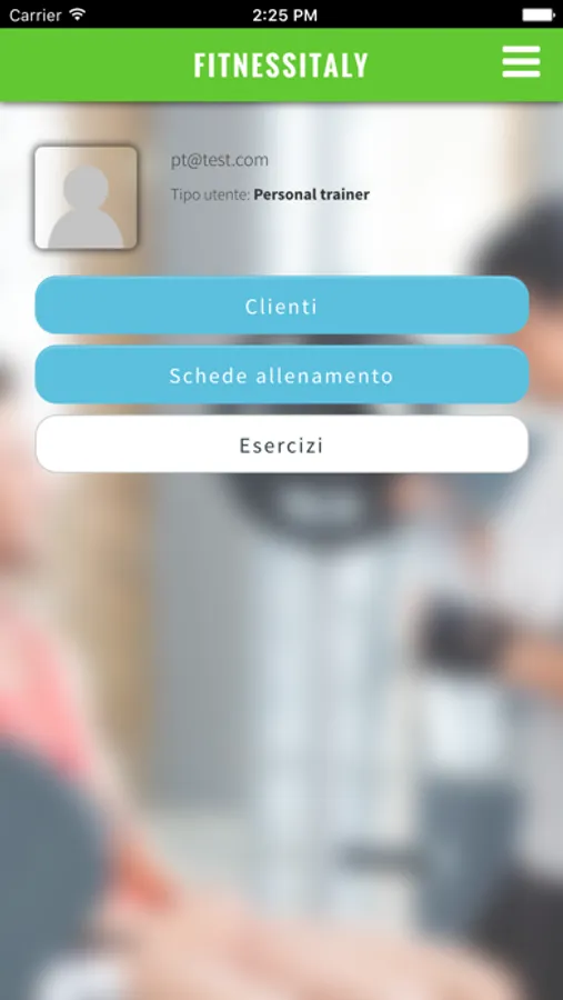L'app Fitnessitaly Club per il cliente ha una configurazione diversa rispetto a quella per Personal Trainer. Il cliente può visualizzare la scheda ed inserire o modificare solo il peso degli esercizi.