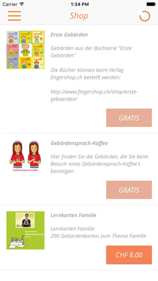 Um die Möglichkeiten der Gebärdensprach-Lernapp zu erforschen, schenken wir Ihnen die beiden Lernsets „Erste Gebärden“ und „Gebärdensprachkaffee“. Weitere Sets können erworben werden.