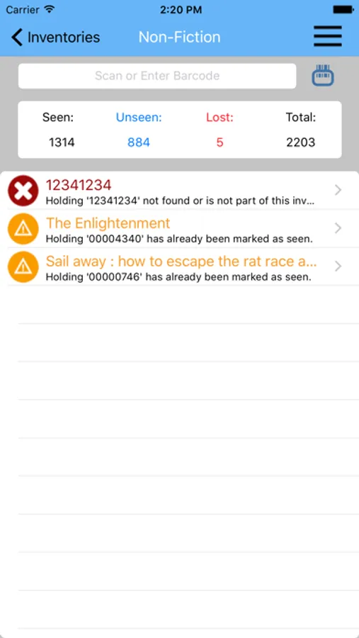 Inventory just got easier! Use your mobile device to scan library items to an active Atriuum inventory and mark those items seen. No more lugging a laptop around on a cart or searching for places to plug in equipment. This new app from Book Systems allows you and your staff to work simultaneously in different sections of the library. Quickly capture item barcodes and update your inventory as you walk from shelf to shelf.