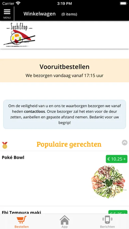 Download onze app en blijf op de hoogte van het laatste nieuws en de nieuwste acties, aanbiedingen en kortingen. Via onze app kunt u onze menukaart bekijken en direct vanaf uw telefoon uw bestelling plaatsen. U kunt via de app ook met iDEAL betalen!