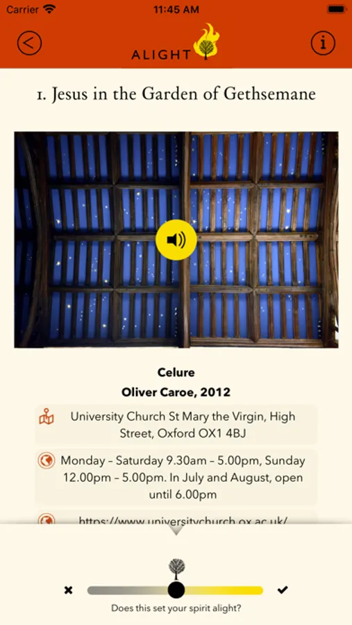 Alight invites you to take time to contemplate the works you alight on, and if they set your heart alight, you can capture your response with the Alight slider.