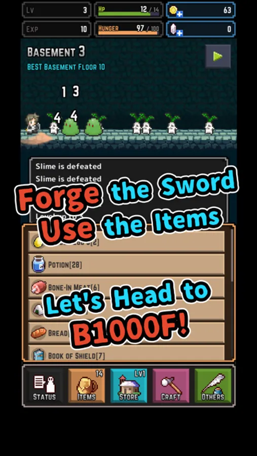 There are three types of equipment: weapons, shields, and accessories, and you can make them stronger by crafting them.
