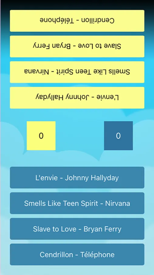 According to your choice of how to play, you will be suggested an extract of lyric or song randomly pulled from a list of 100 hits of the moment.