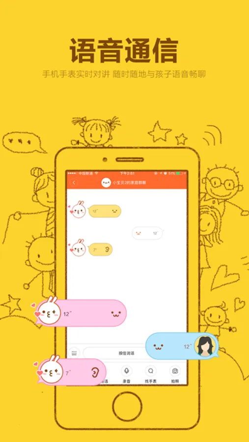 2、语音通信:手机手表实时对讲, 随时随地与孩子语音畅聊