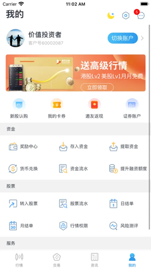 【新老用户,账户资金只需达到999港元,月月可领港美股高级行情。】
