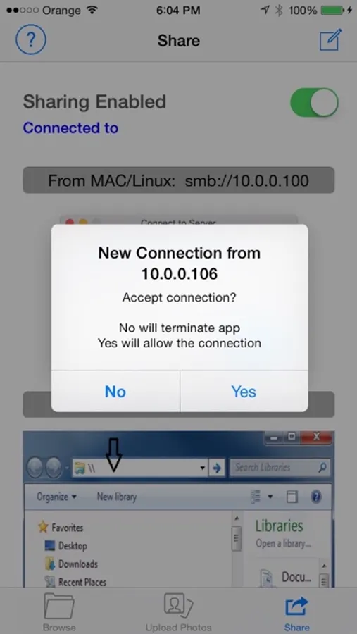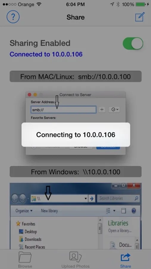 3. Connect from your PC using File Browser as described in the share tab