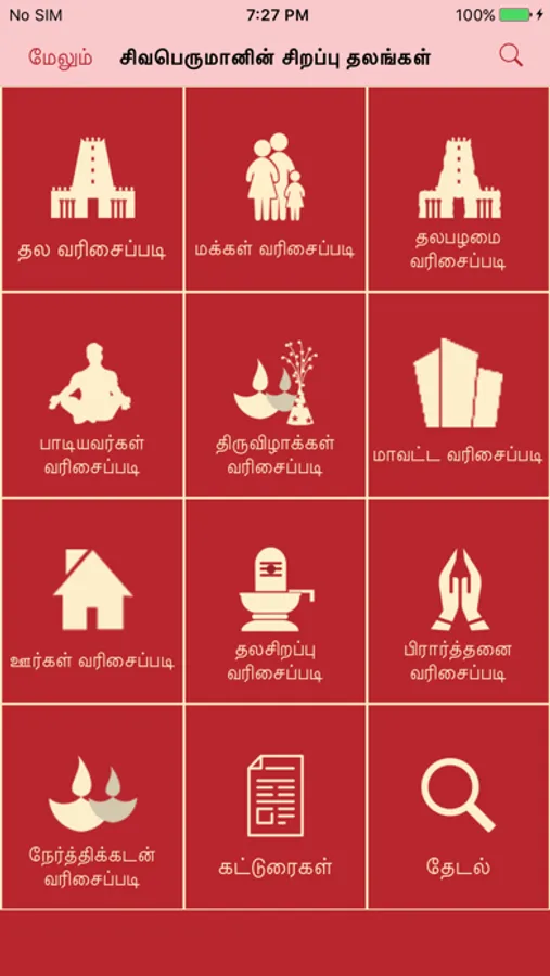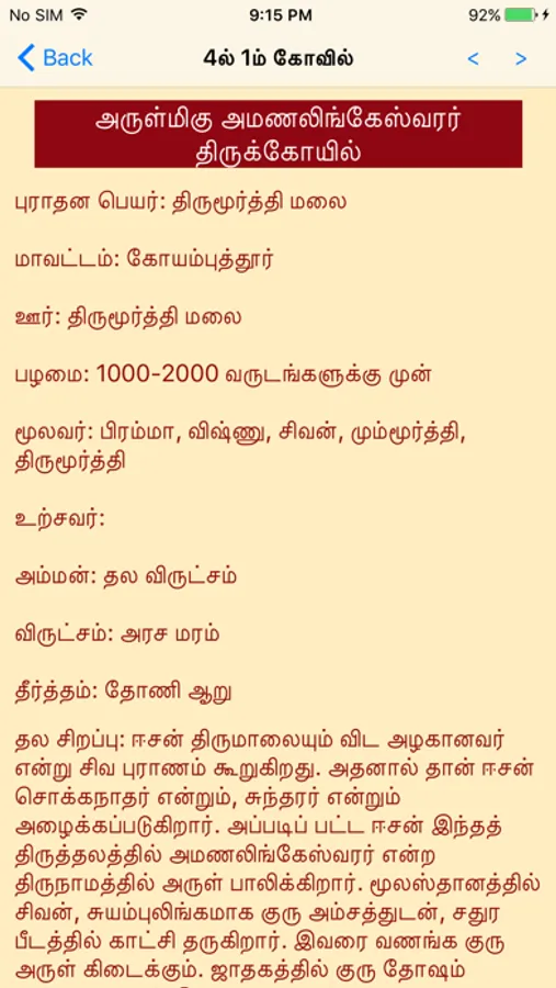 Thapa Moolavar, Thala Amman, The Temple Proud, Temple Importance, Festivals, Temple Prayers etc. The app is organized in a way that will easily help you to find the temple you want. For e-g, if you are a private company working person, you want promotions in your office, not only hardwork, but also god's grace will help you. You can find a set of Shiva temples which will help you to do prayer specific for that purpose. Same is true for Students, Youngsters, People looking to get married etc.