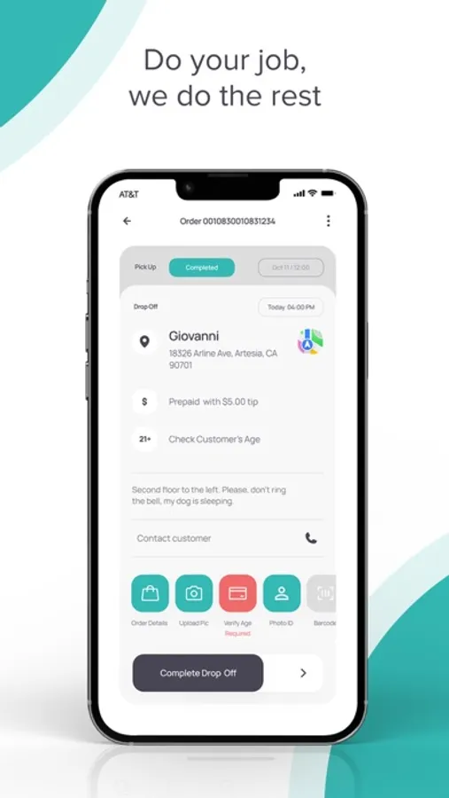 Proof of delivery tools: take photos, scan barcodes, and collect signatures.