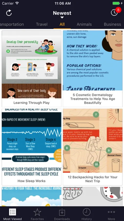 With rising popularity of infographics, number of infographic lovers has also grown multifold. But sharing infographics socially has always been a problem, mainly due to their sizes. Our Infographics app not only brings endless infographics at your fingertips but also makes them easy to read and collect your favorite ones.