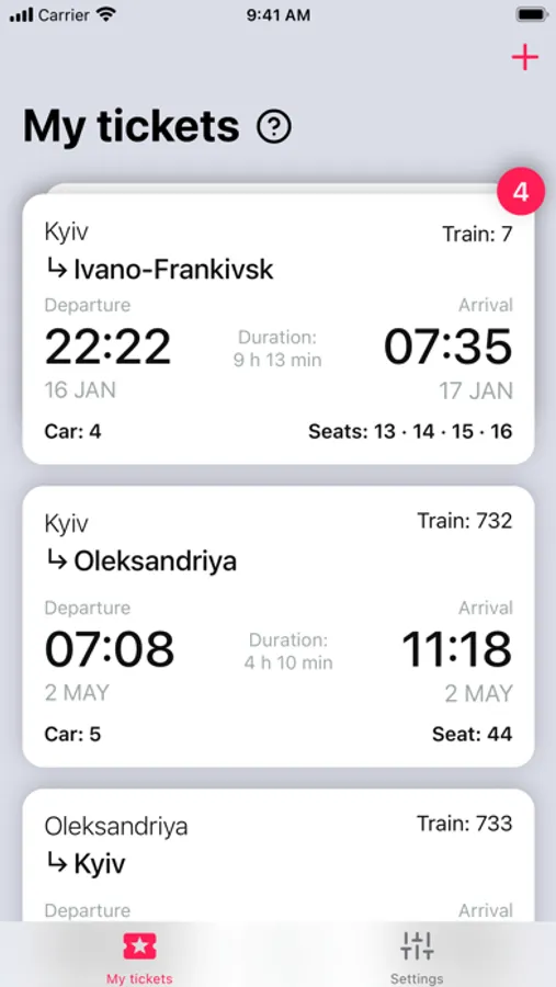 UZ Tickets application will help you to keep and organize tickets for Ukrainian Railways. You just need to download, open the app and point a camera at a purchased ticket. You can add tickets for you or all your friends and family. Show the QR-codes from your phone to a controller. No Internet connection is required.